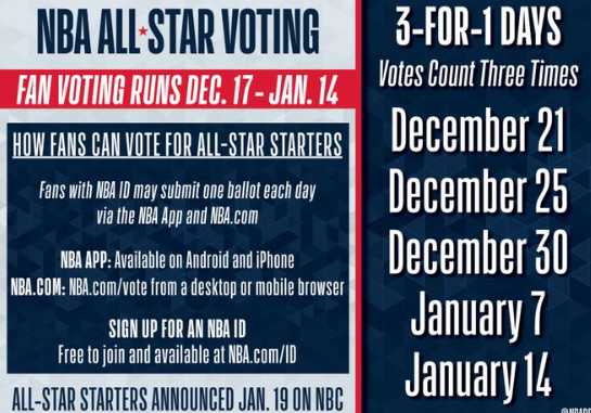 北京时间1月15日,NBA全明星投票将于今日中午截止,东西部各五位首发球员名单将于1月20日公布,替补球员则由联盟教练团在2月2日选出。